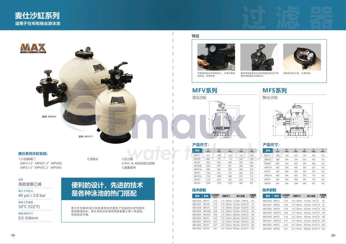 意萬仕創(chuàng)新的設計和先進的技術(shù)提供了優(yōu)越的過濾性能和品瑩剔透麥仕系列沙缸采用高密度聚乙塔一體成型,性能穩(wěn)定可靠。