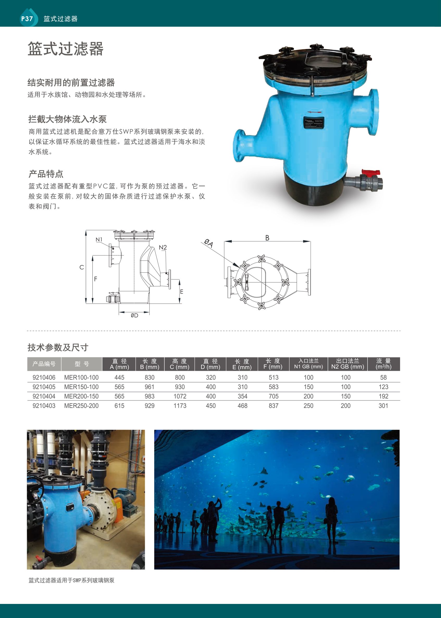 攔截大物體流入水泵 商用籃式過濾機是配合意萬仕SWP系列玻璃鋼泵來安裝的,以保證水循環系統的最佳性能。 籃式過濾器適用千海水和淡水系統
