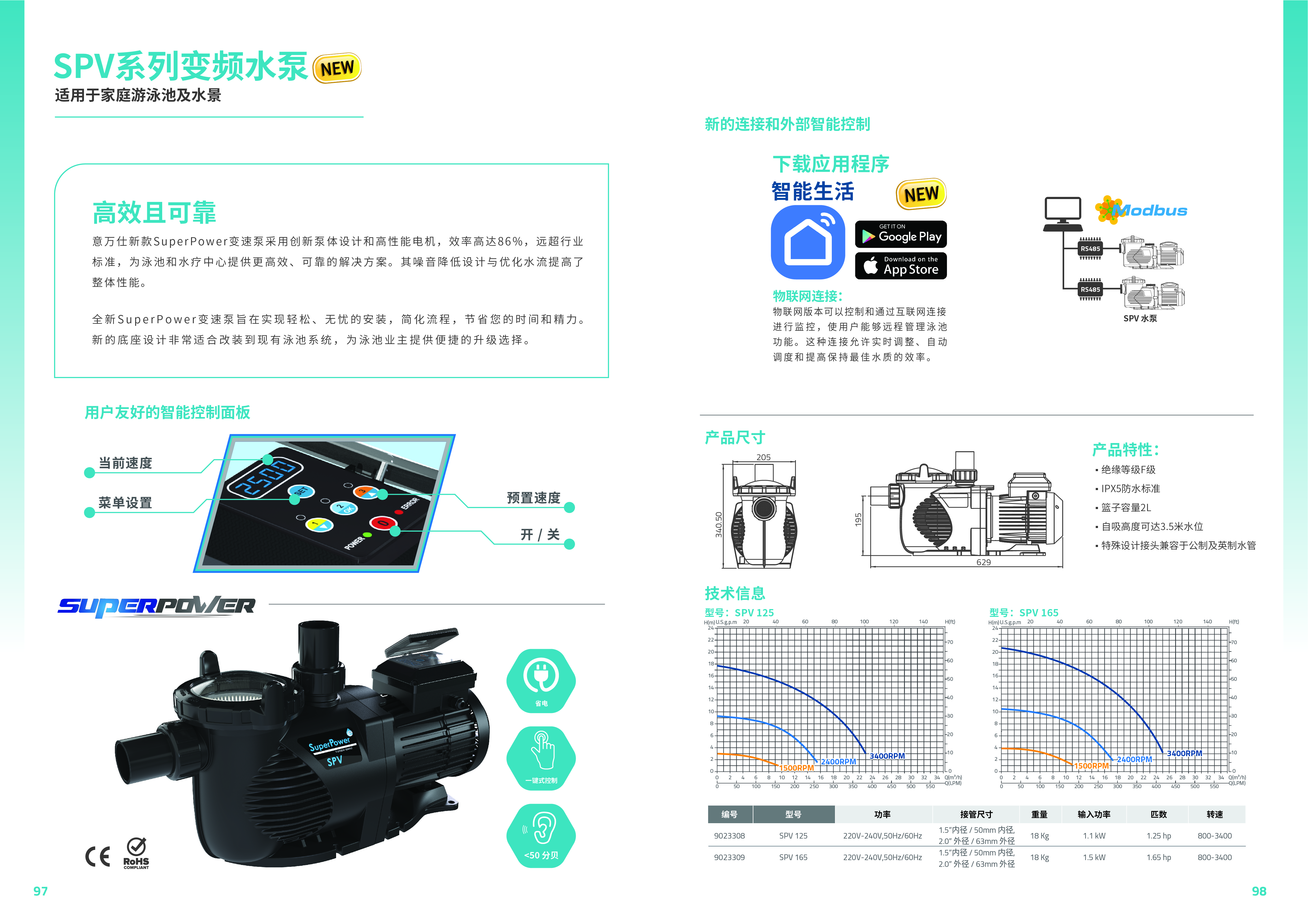 意萬仕新款SuperPower變速泵采用創新泵體設計和高性能電機,效率高達86%,遠超行業 標準,為泳池和水療中心提供更高效、可靠的解決方案。其噪音降低設計與優化水流提高了 整體性能。 全新SuperPower變速泵旨在實現輕松、無憂的安裝,簡化流程,節省您的時間和精力。 新的底座設計非常適合改裝到現有泳池系統,為泳池業主提供便捷的升級選擇。