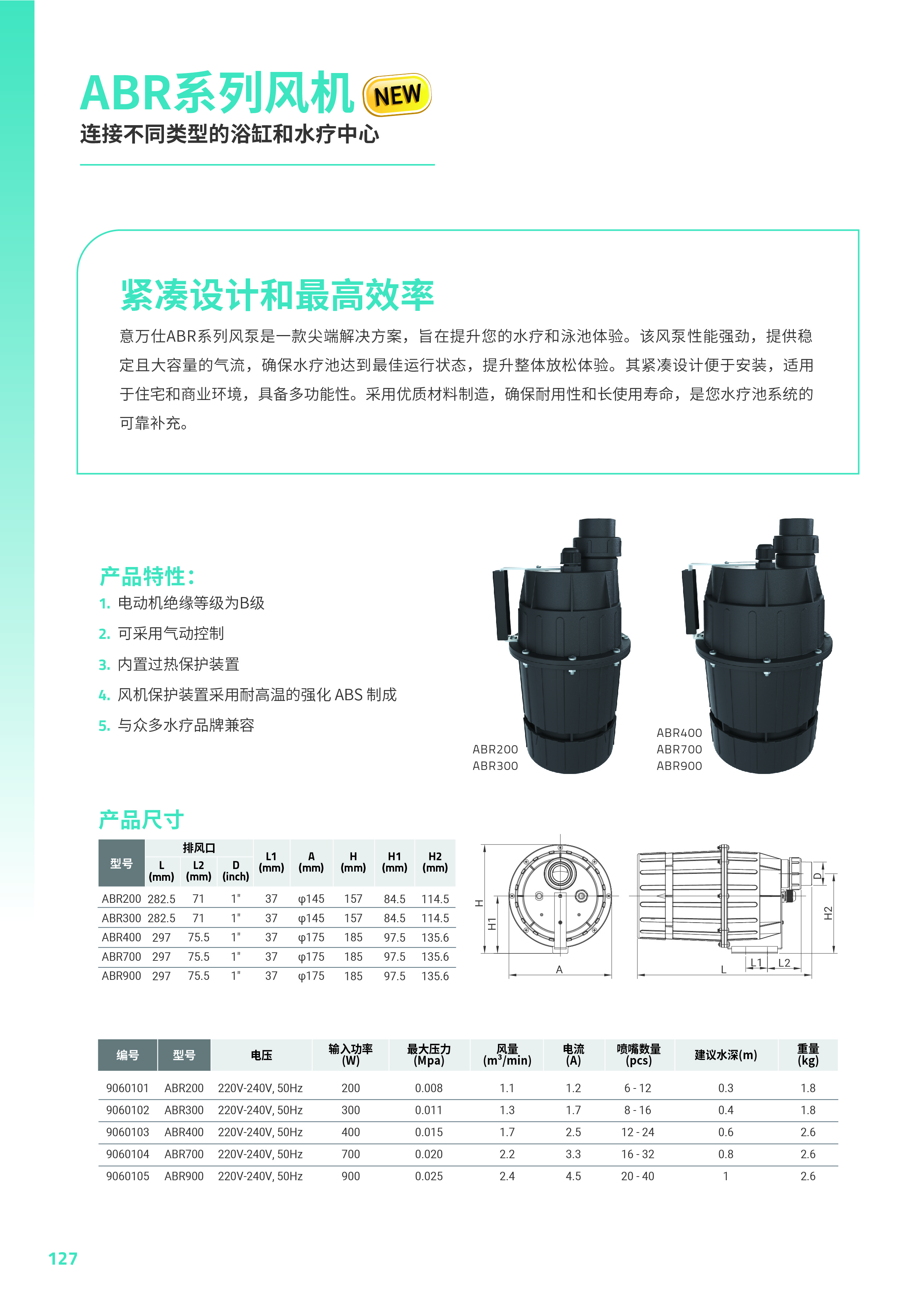 意萬(wàn)仕ABR系列風(fēng)泵是一款尖端解決方案,旨在提升您的水療和泳池體驗(yàn)。該風(fēng)泵性能強(qiáng)勁,提供穩(wěn) 定且大容量的氣流,確保水療池達(dá)到最佳運(yùn)行狀態(tài),提升整體放松體驗(yàn)。其緊湊設(shè)計(jì)便于安裝,適用 于住宅和商業(yè)環(huán)境,具備多功能性。采用優(yōu)質(zhì)材料制造,確保耐用性和長(zhǎng)使用壽命,是您水療池系統(tǒng)的 可靠補(bǔ)充。