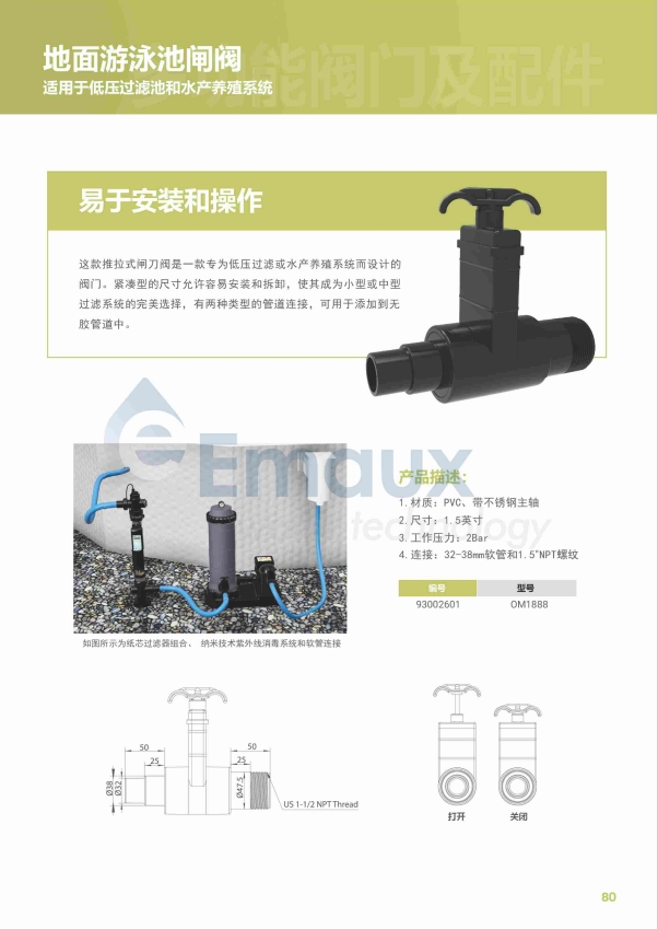 競技池這款推拉式閘刀閥是一款專為低壓過濾或水產(chǎn)養(yǎng)殖系統(tǒng)而設計的閥門。緊湊型的尺寸允許容易安裝和拆卸,使其成為小型或中型膠管道中。過濾系統(tǒng)的完美選擇,有兩種類型的管道連接,可用于添加到