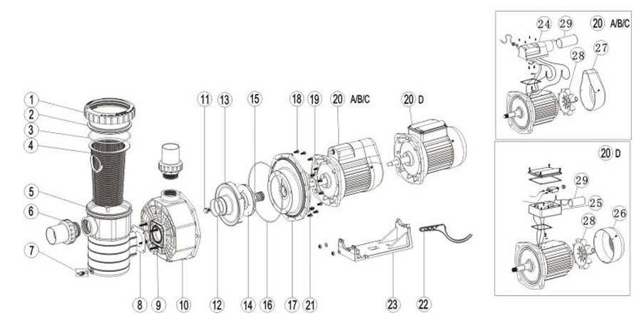 SB系列水泵提供高流量和高能源效率的性能。環鎖密封設計,帶透明蓋及2英寸吸入口和排出口。以減少泄漏和最大提高吸入效率。 SR系列泵是商業溫泉池中高水頭和中水頭安裝的最佳選擇。使用高質量的密封和軸承以確??煽康馁|量。它提供高流量和能源高效率性能。