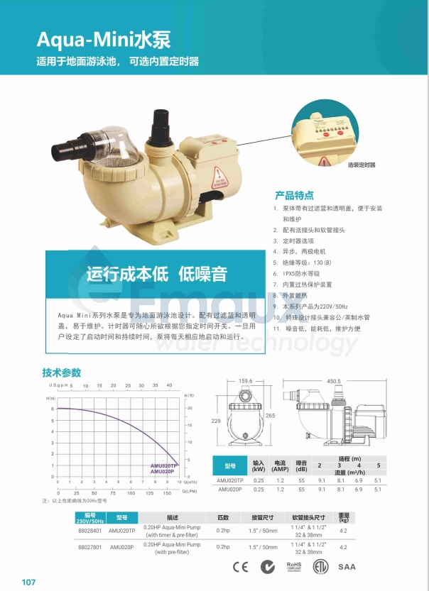 適用于地面游泳池, 可選內(nèi)置定時(shí)器