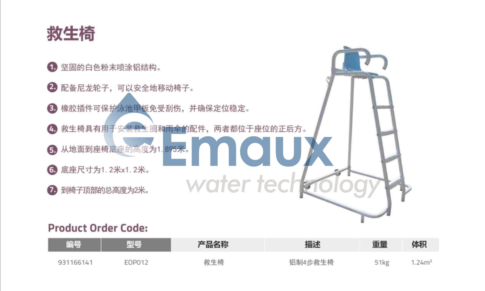 4. 救生椅具有用于安裝救生圈和雨傘的配件,兩者都位于座位的正后方。